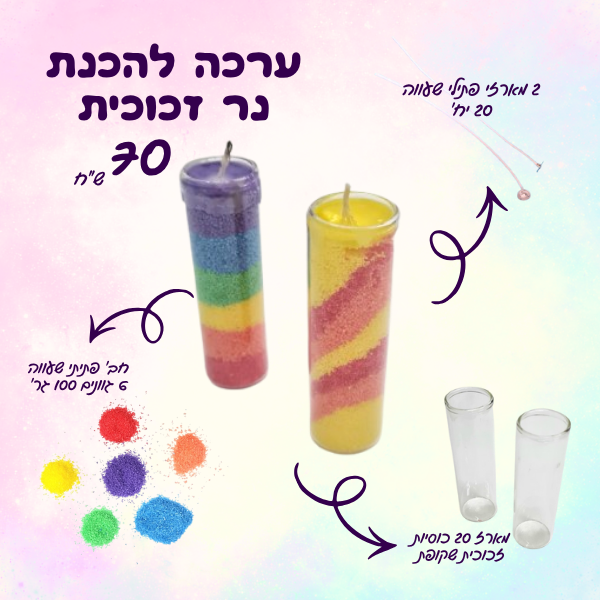 ערכה להכנת נר זכוכית לחנוכה 20 יח'